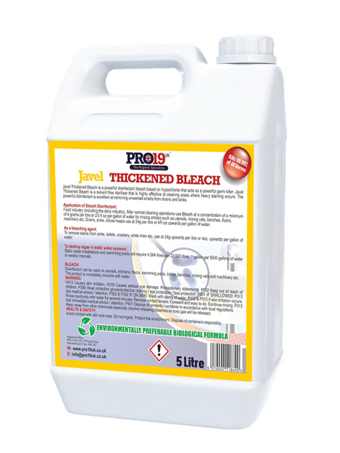 Javel Thickened Bleach is a thick bleach which is a powerful disinfectant bleach based on hypochlorite that acts as a powerful germ killer.